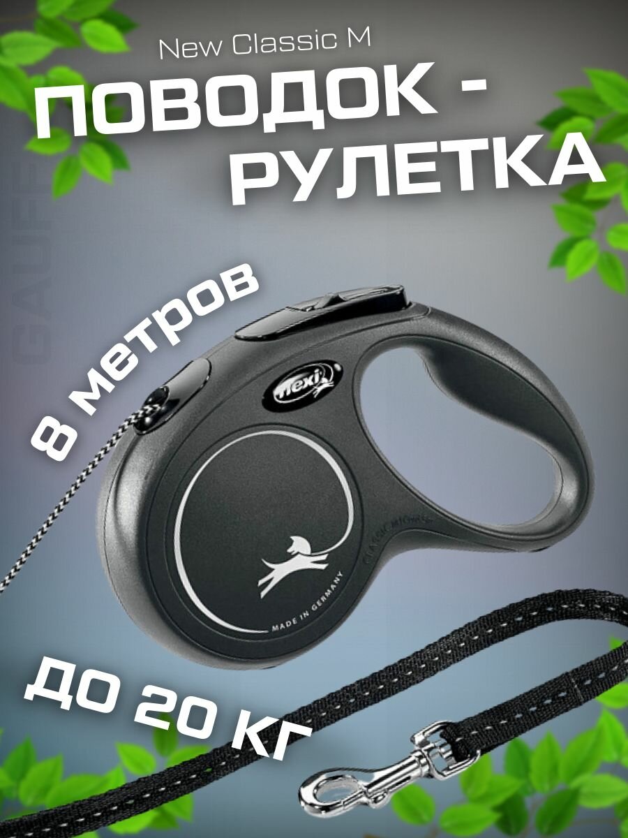 Купить Поводок-рулетка Flexi New CLASSIC М, 8 м, 20 кг, черный