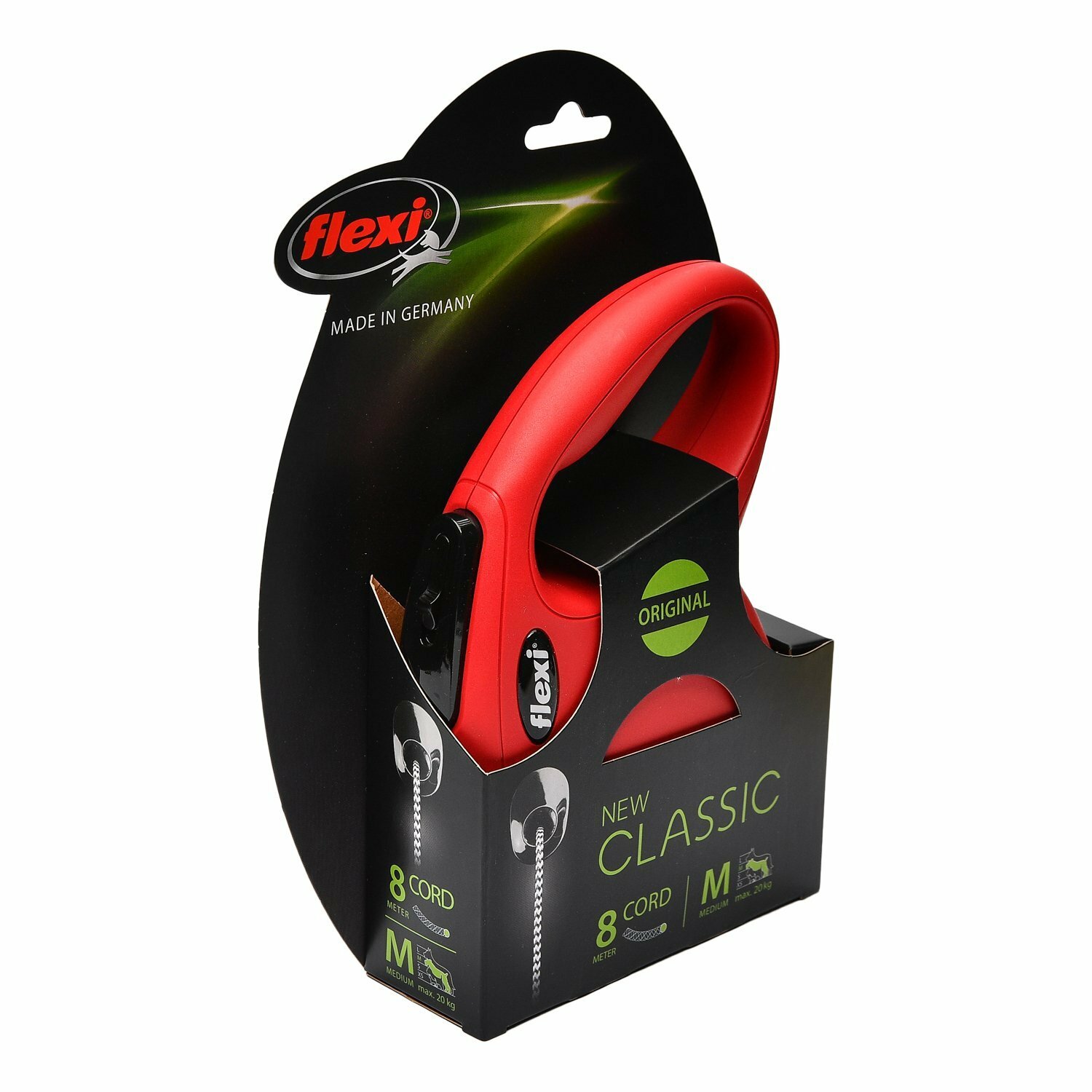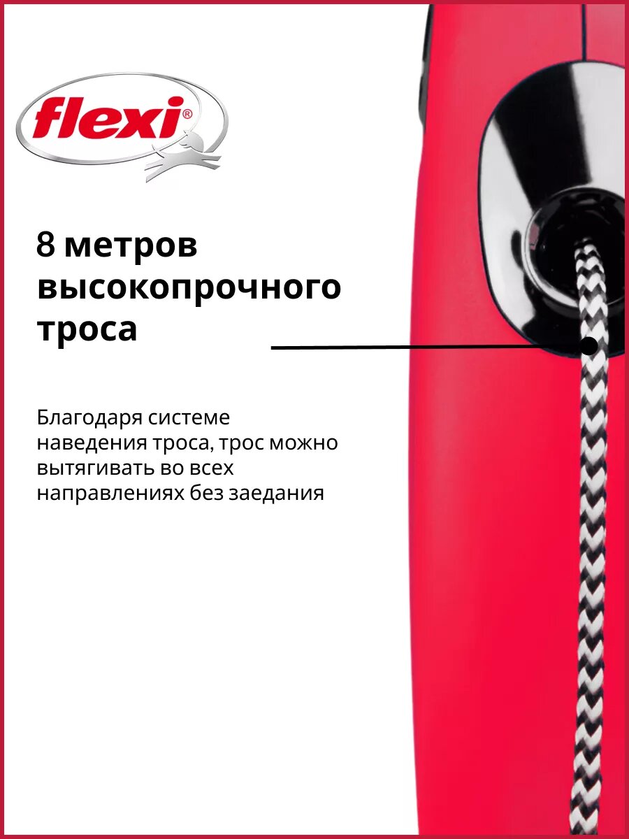 FLEXI NEW CLASSIC CORD – Флекси тросовый поводок-рулетка для животных, 8 м, размер M, красный (1 шт)