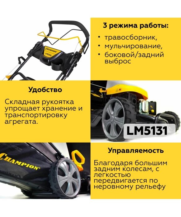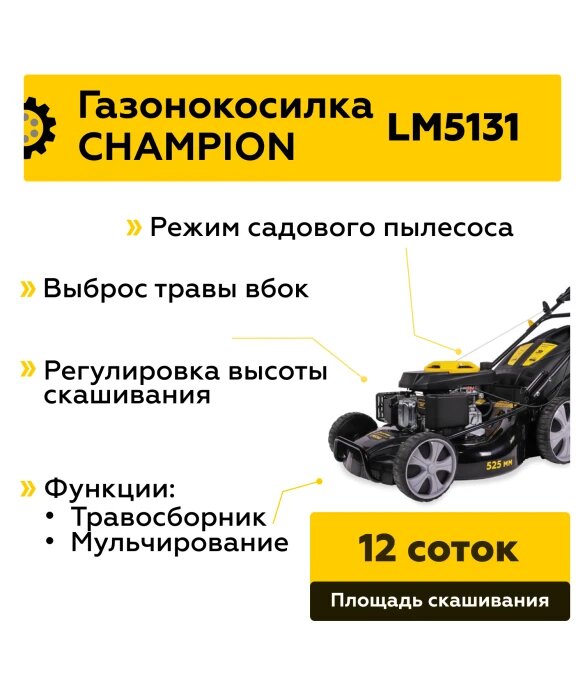 СохранитьБензиновая газонокосилка CHAMPION LM5131, 4.1 л.с., 51 см интересное:
