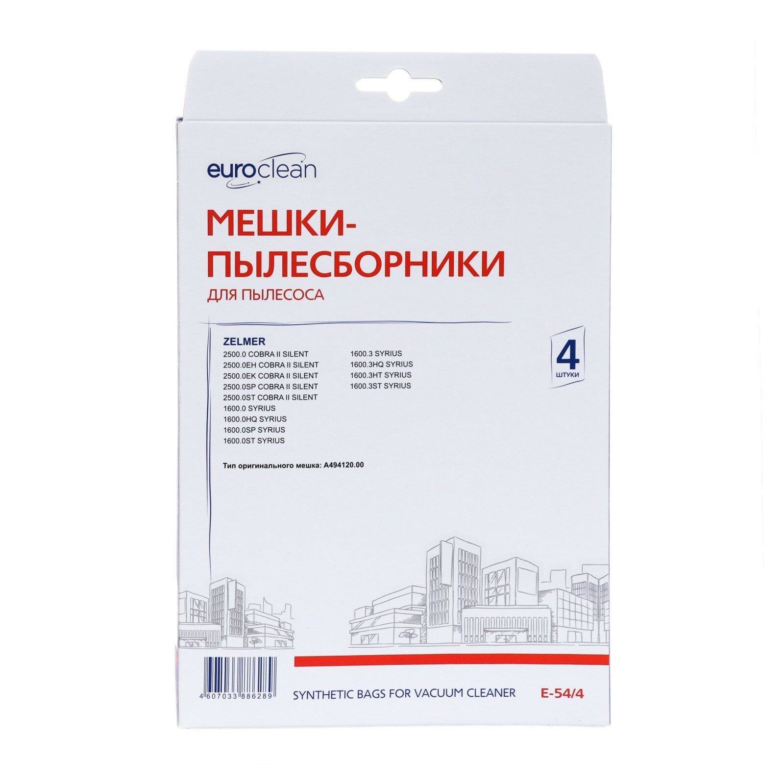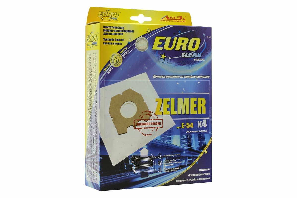 Синтетические пылесборники Euroclean E-54, белый, 4 шт, для пылесоса ZELMER