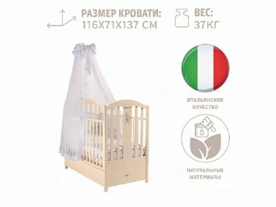 | Отзыв: | Скажу честно, уговорила мужа именно ее купить по тому, что изначально мне дизайн очень понравился, для нас, девочек, это важно) Но и в плане качества все супер, кроватка крепкая, из хороших материалов и с отличным маятником, лично наш ребенок быстро привык тут усыпать, на руках практически не качаю теперь. Хорошая кроватка, итальянцы знают толк в красивых и практичных вещах) |