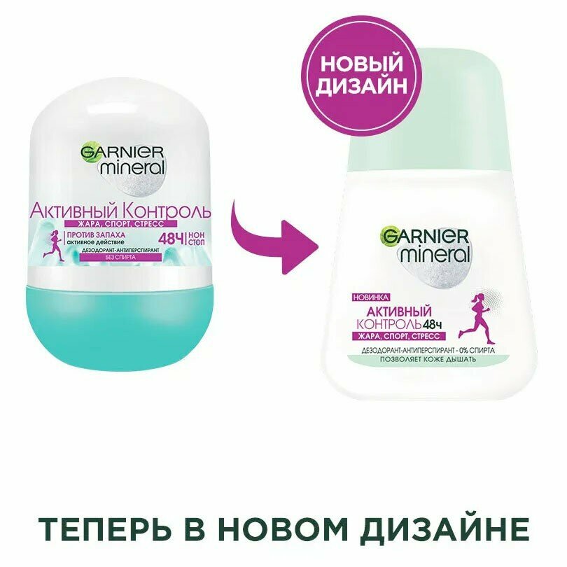 GARNIER Дезодорант-антиперспирант Mineral Активный контроль с активными минералами, защита 48 часов, ролик, 50 мл, 50 г, 1 шт.