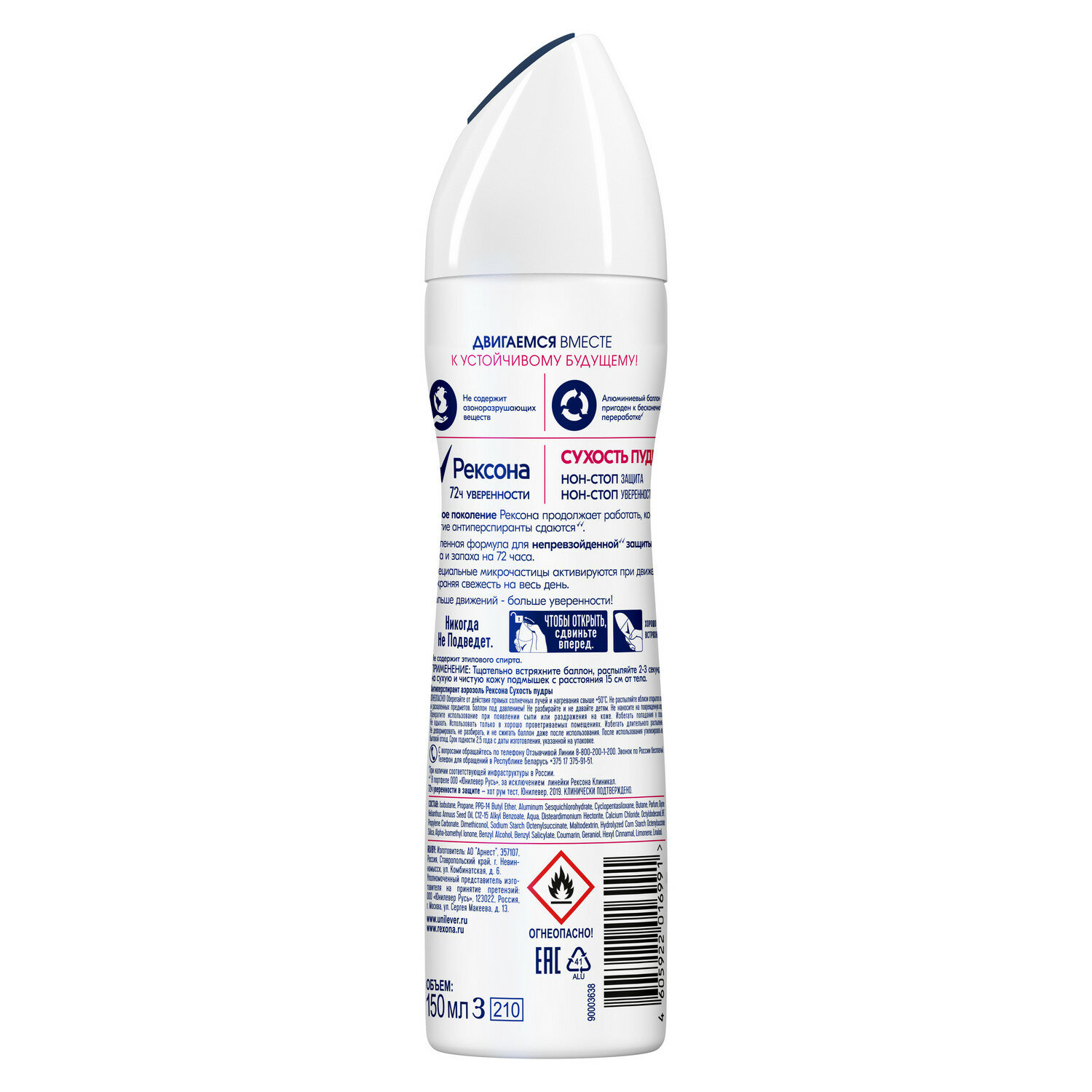 Антиперспирант Аэрозоль Rexona Сухость Пудры 150мл 4605922016991