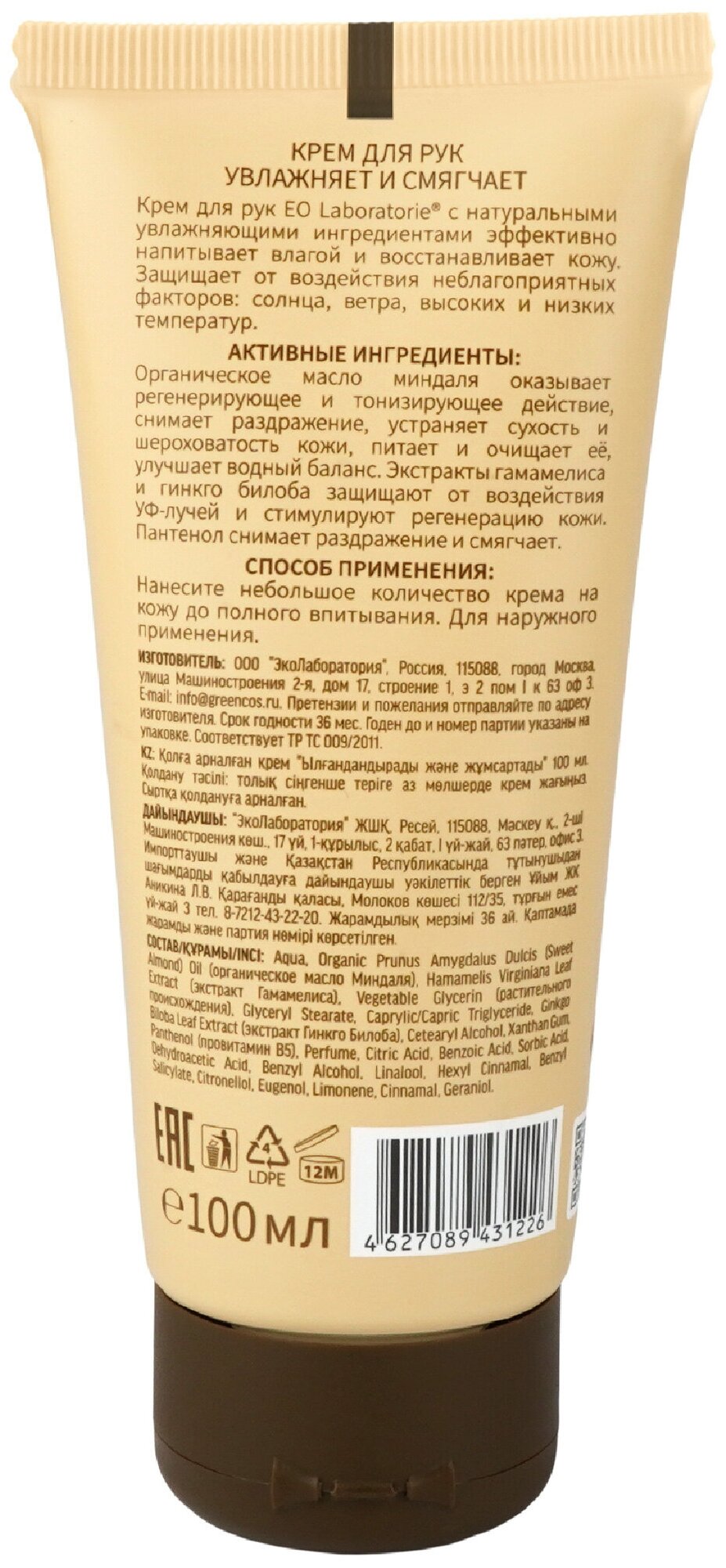 Крем для рук EO Laboratorie, Увлажняет и Смягчает, 100 мл