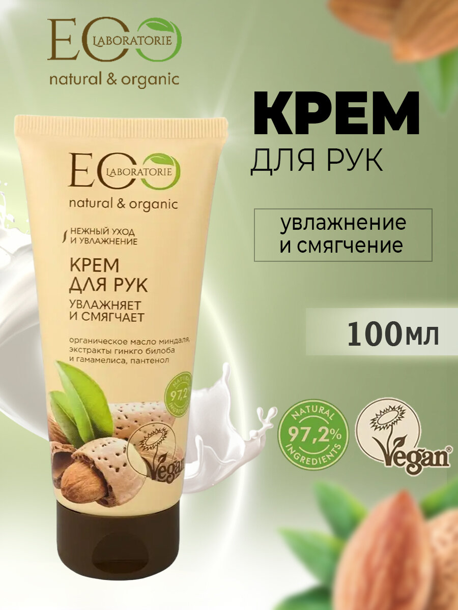 Эко лаборатория / Eco lab - Крем для рук увлажняет и смягчает с маслом миндаля 100 мл