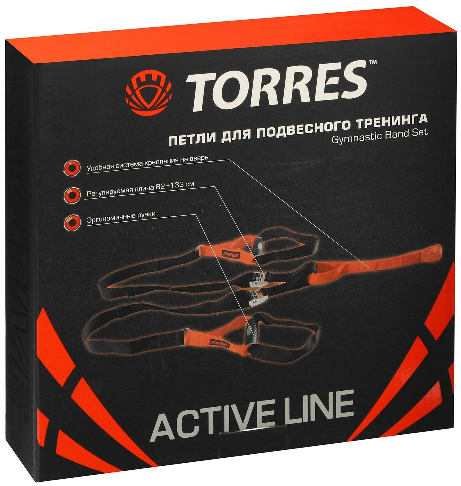 TORRES Петли для подвесного тренинга TORRES, эргономические нескользящие ручки, цвет черный/оранжевый