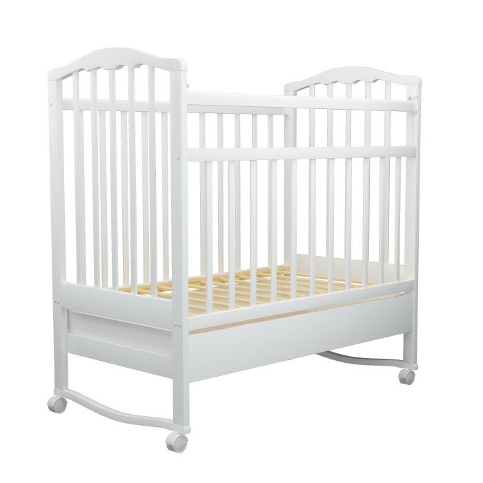 Кроватка детская "Золушка-2NEW" (колесо-качалка + ящик) белый