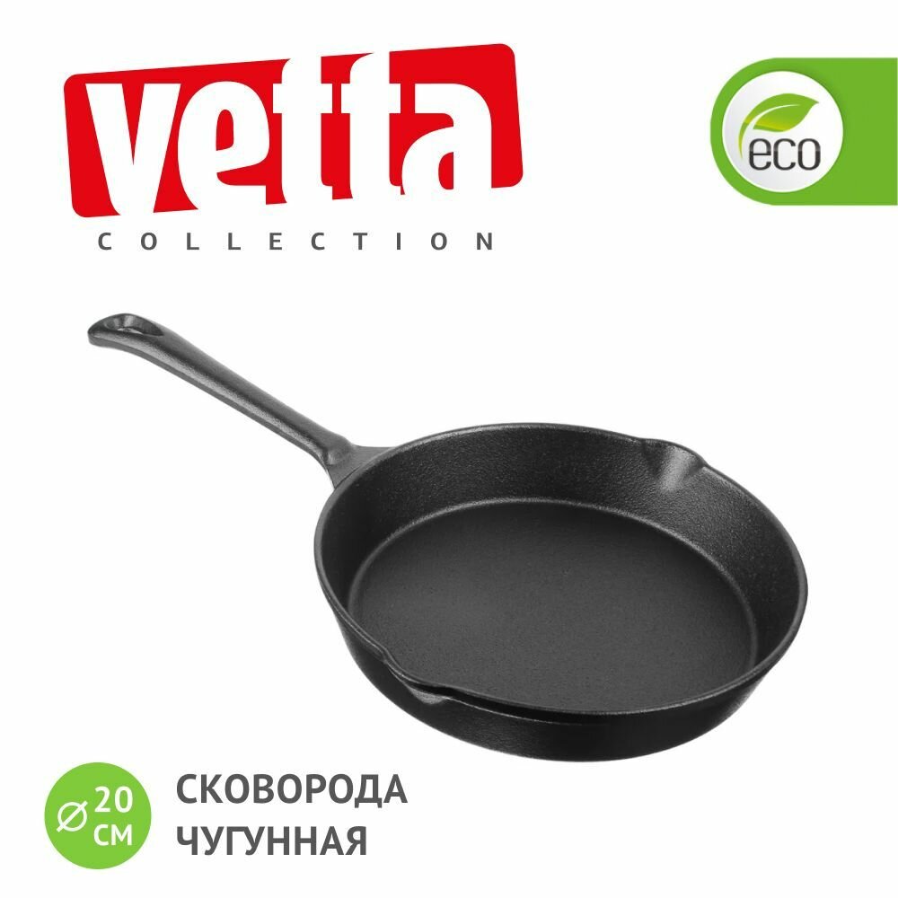 Сковорода 20 см чугунная VETTA, 2 слива, индукция, без крышки