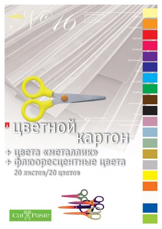 Набор № 16 цветной картон форматА4 20Л.20ЦВ. 1 ВИД интересное: