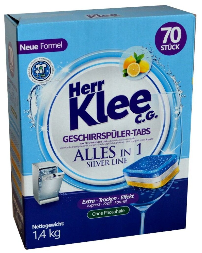 Herr Klee C.G. Silver Line Geschirrspuler-Tabs Alles in 1 Таблетки для посудомоечных машин Всё в Одном 70 шт 1,4 кг