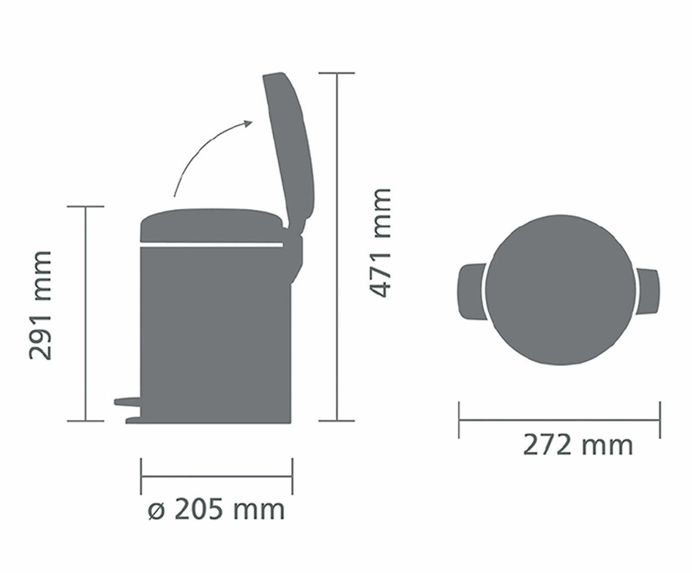 Бак Brabantia NewIcon, 5 л metallic grey 1.1 кг 29.2 см 20.5 см 26.6 см 5 л 20.6 см