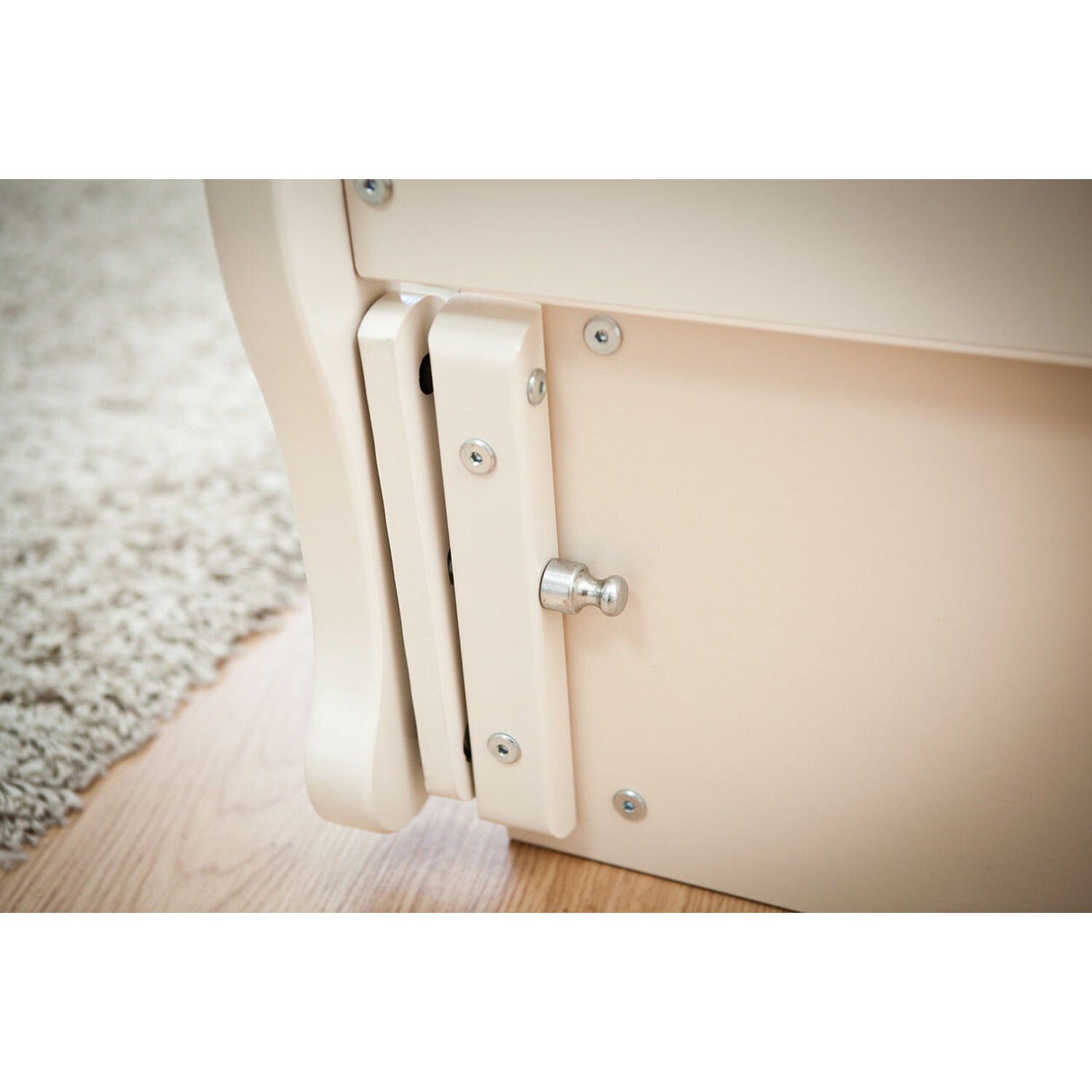 | Минусы: | Нельзя одной рукой одним движением опустить боковую стенку. Для этого нужно расслабить фиксатор сначала с одной стороны, а потом с другой, после чего опустить. Но зато фиксаторы простые и надежные. |
