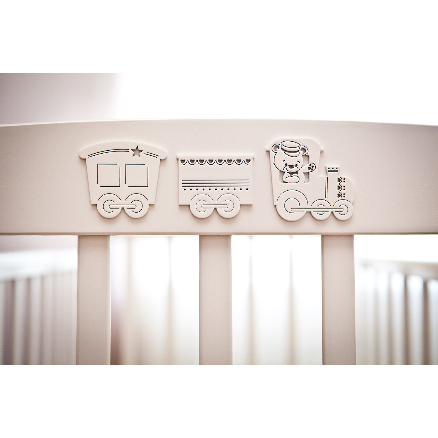 Кровать Красная звезда С 717 "Елисей" со стразами (Паровозик) (слоновая кость)