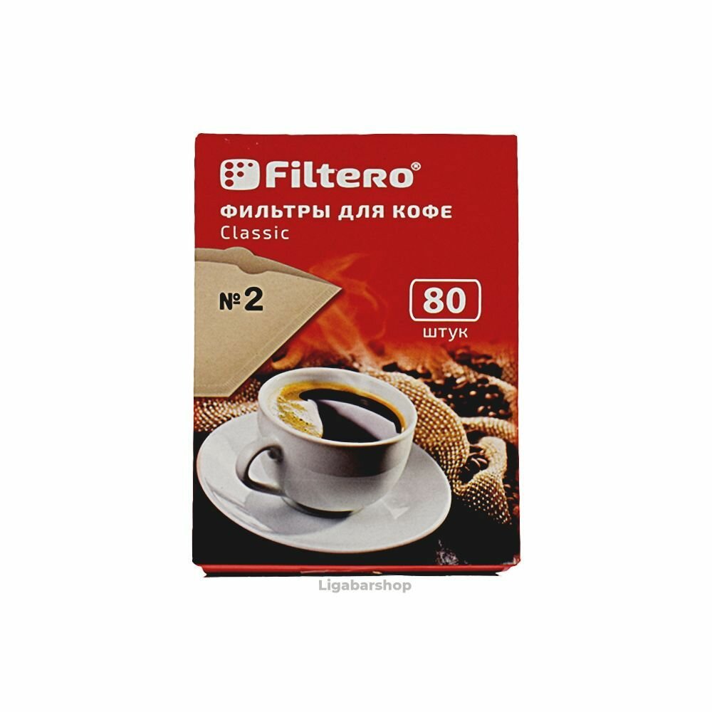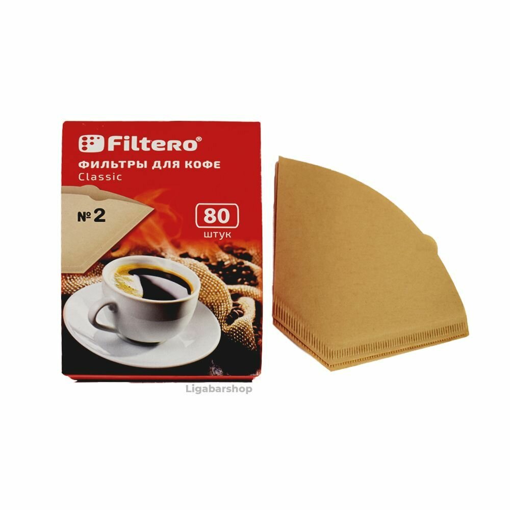Фильтры для заваривания кофе Filtero Classic Размер №2, неотбеленные, 80 шт