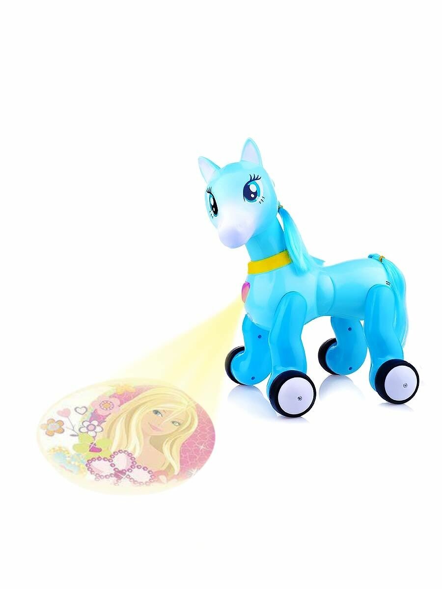 Игрушки Zhorya Лошадка Умный питомец + миска + расческа на р/у (свет, звук, проектор) сиреневая, ZYB-B2997-2