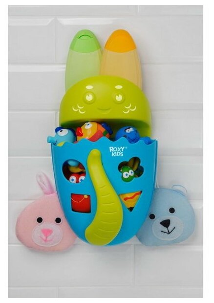 Органайзер детский ковш для ванной для игрушек для купания DINO от ROXY-KIDS c полкой, цвет голубой