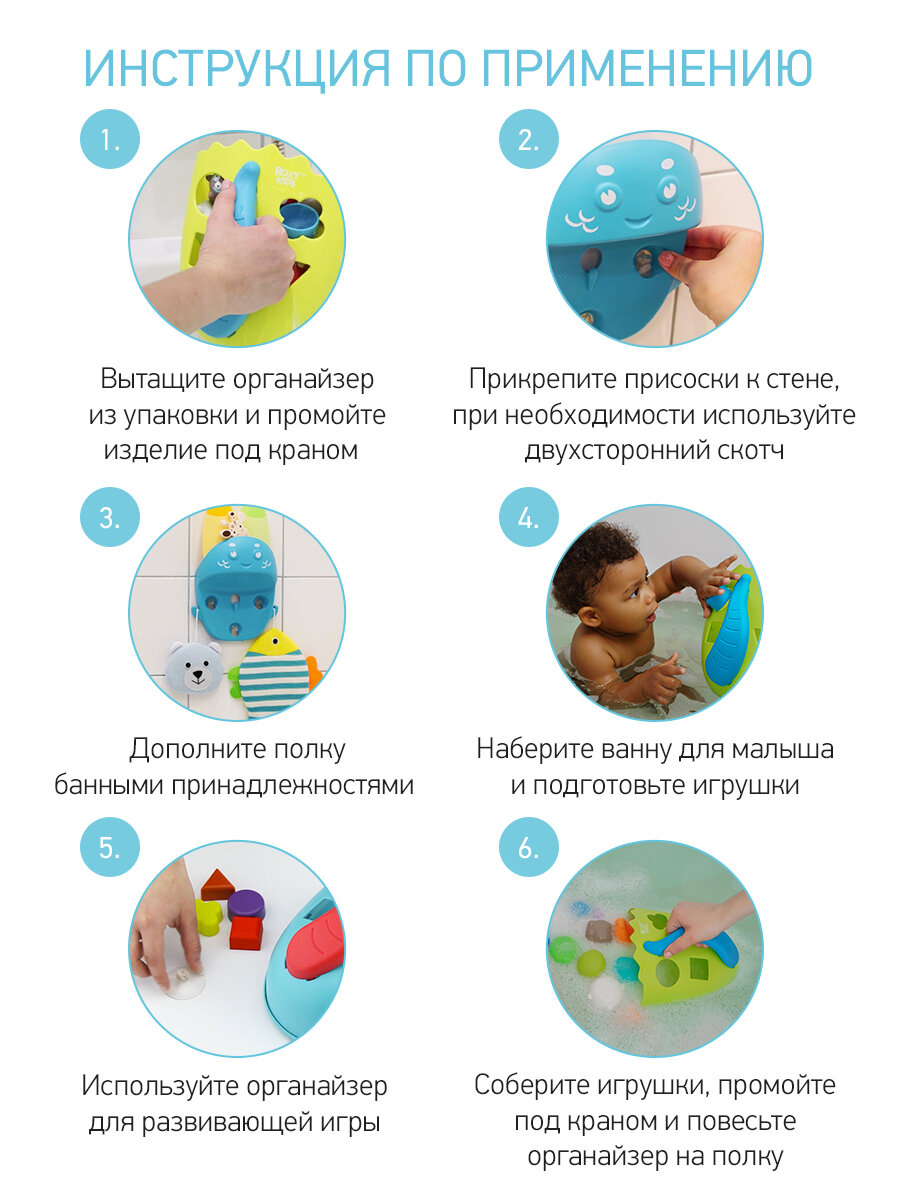 | Минусы: | в комплекте не было 2 наклеек для присосок, хотя по инструкции они там должны были быть, контейнер часто падает со стены, поместить в него игрушки практически невозможно, туда может влезть пара книг для ванны и максимум 4 маленькие резиновые пищалки. Не более того, так что вообще бесполезная вещь |