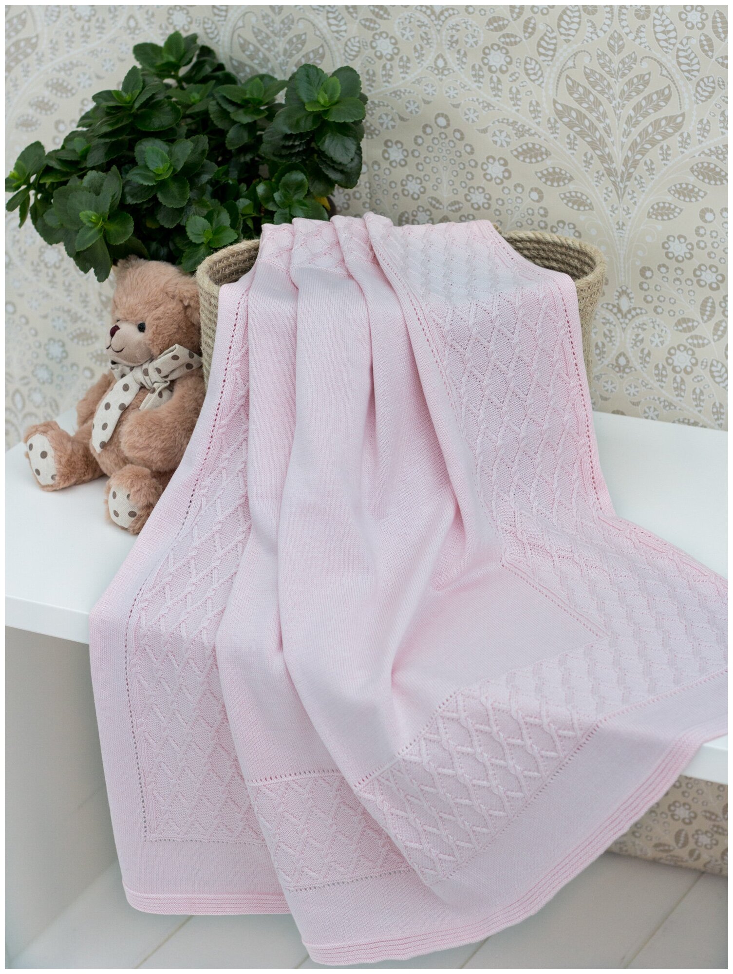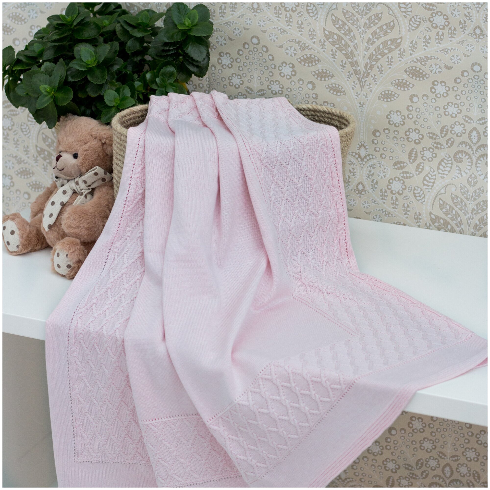 1675-0 Плед "Очарование" 90*90,розовый, вязанное полотно интересное: