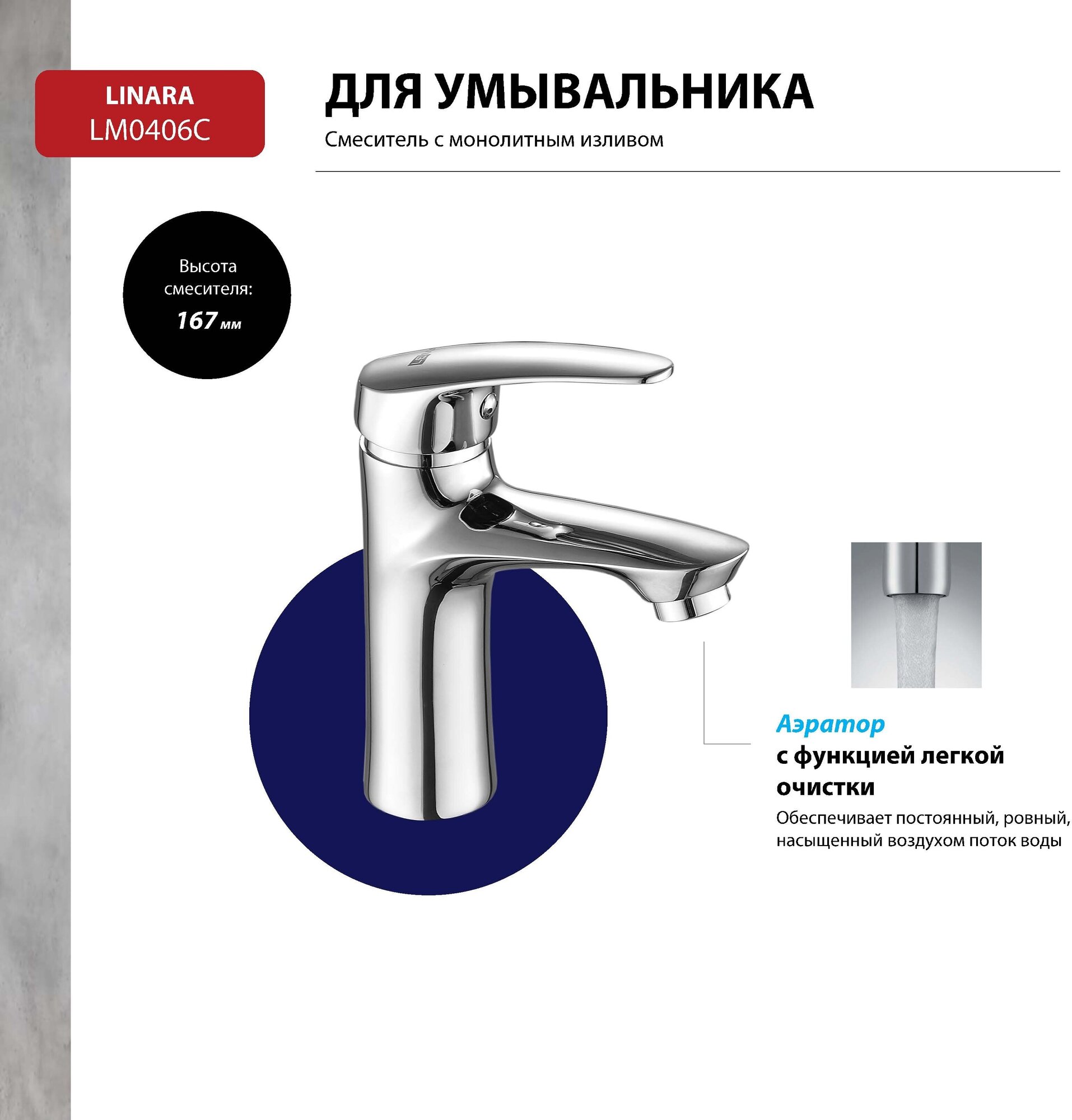 Смеситель для умывальника Линара lm0406c монолитный хром