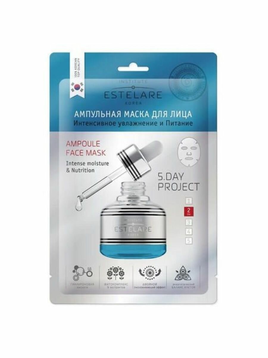 Estelare Ампульная маска (5дней) для лица 2 день "Интенсивное увлажнение и Питание" 23 г.