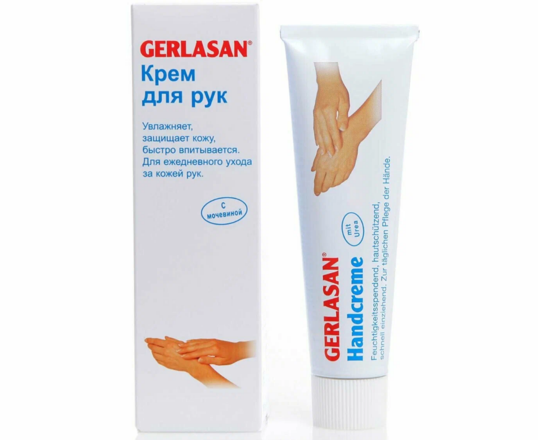 | Дополнительная информация | Идеальное защитное средство для кожи рук в течение дня. Благодаря порошку тапиоки (пудра тропического растения) после использования крема не остается ощущения скользких и влажных рук. Крем для рук Герлазан (Gerlasan Hand Cream) отлично увлажняет кожу и защищает от возможных инфекций (клотримазол, который не накапливается в коже ,3 бисаболол). В качестве питательных ингредиентов в составе крема содержится пантенол и масло жожоба. Рекомендуется особенно тем, кто вынужден часто мыть руки (врачи, косметологи, мастера маникюра и педикюра и т.д.). |