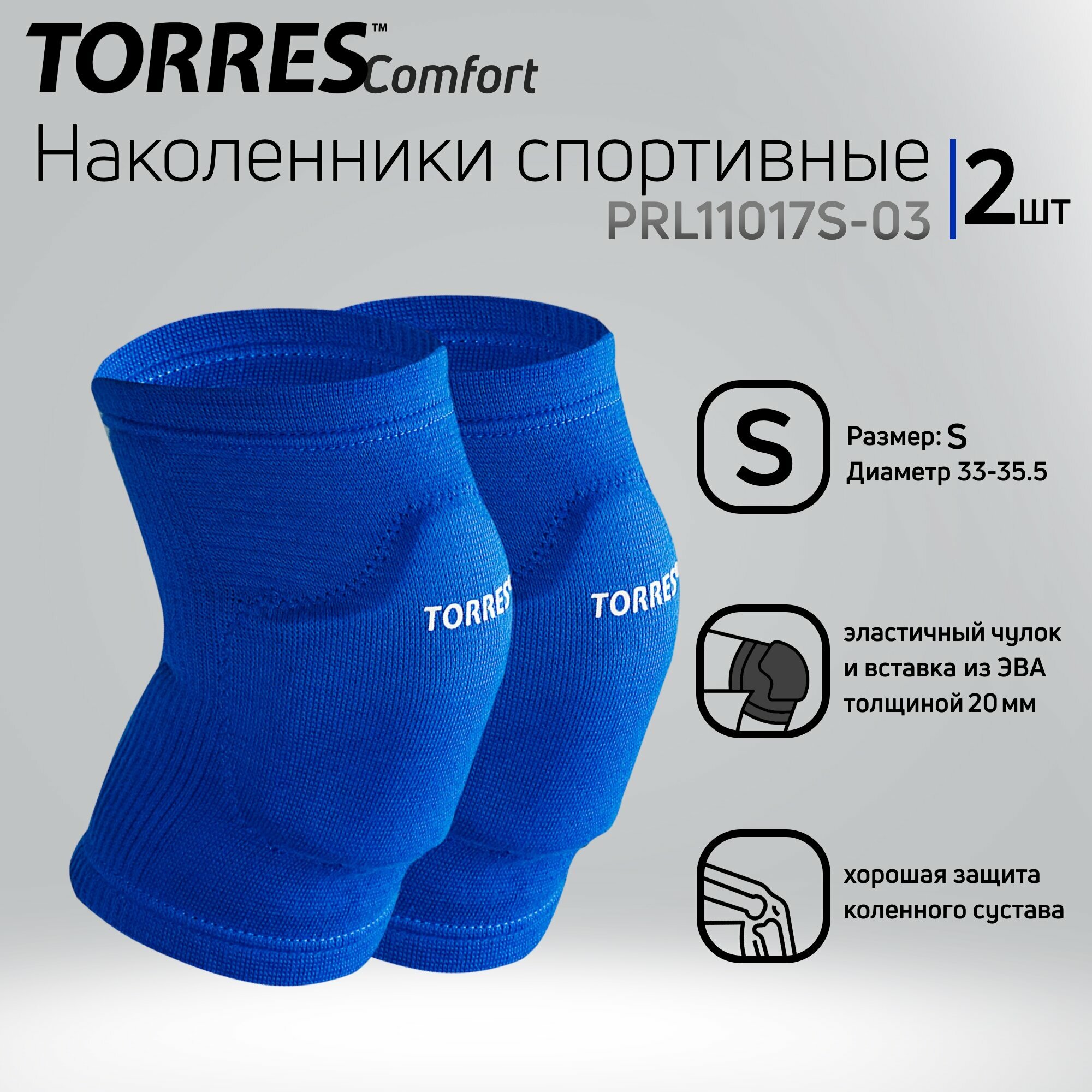 Наколенники спортивные Torres Comfort, синий, размер S, PRL11017S-03, нейлон, ЭВА