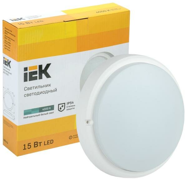 Светильник светодиодный Iek ДПО 4003 15 Вт IP54 4000K круг белый IEK (ldpo0-4003-15-4000-k01) LDPO0- .