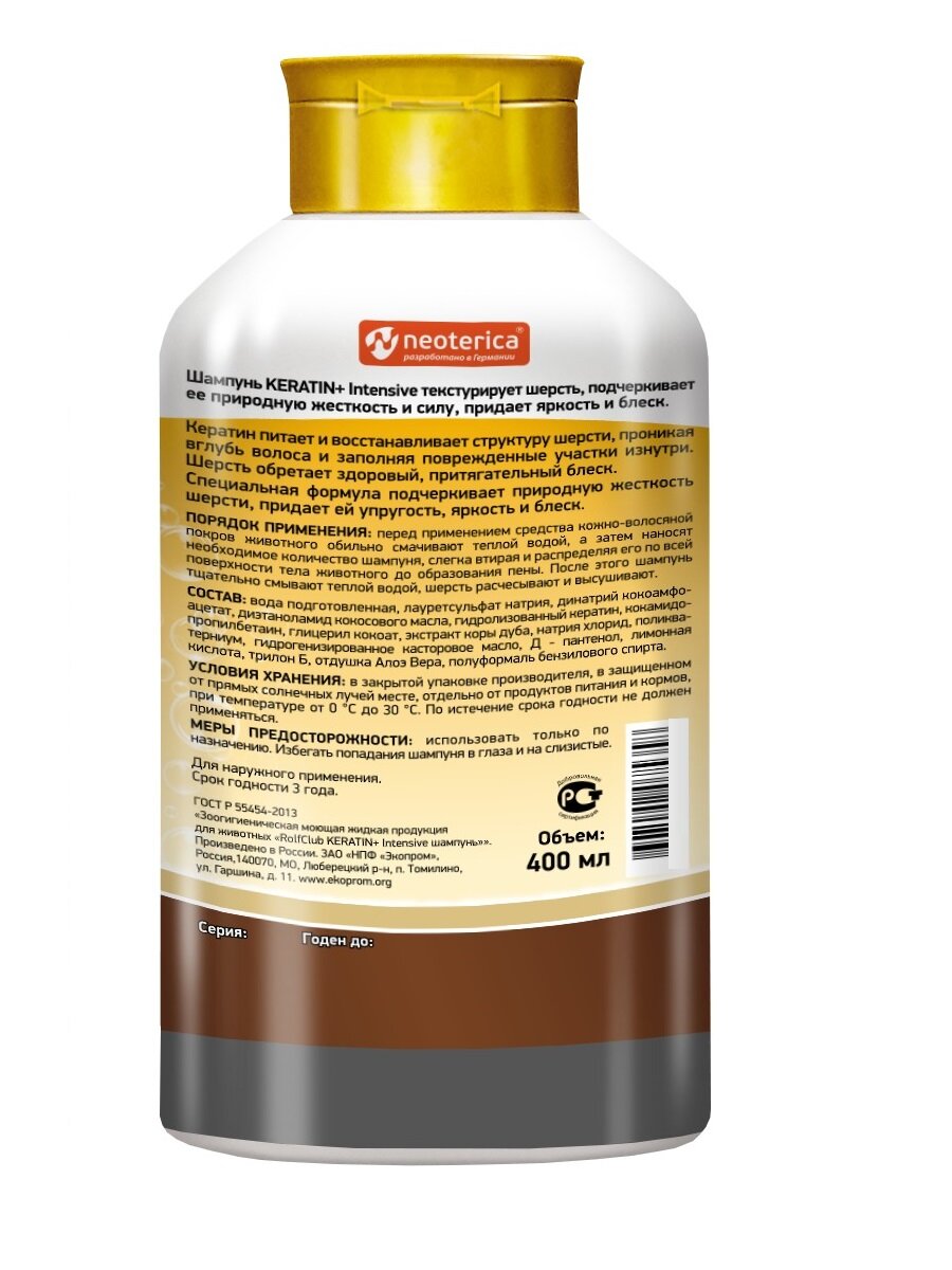 Rolf Club KERATIN+ INTENSIVE шампунь для жесткошерстных собак и кошек 400 мл (1 шт)