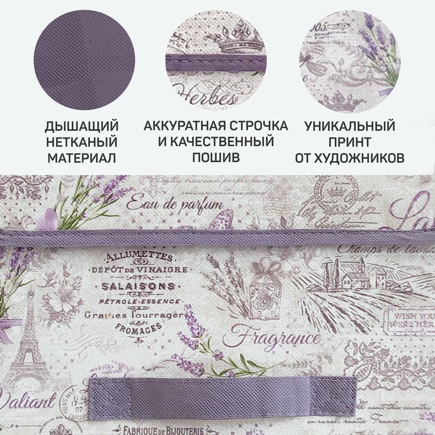 Коробка для хранения Valiant Lavande, с крышкой, 30 x 40 x 25 см
