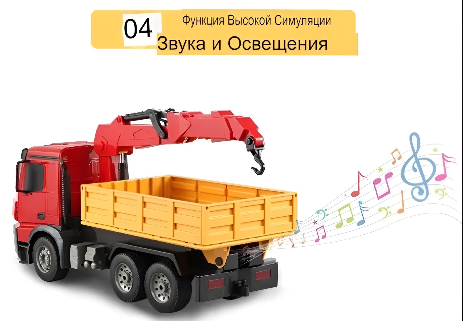 Радиоуправляемый кран многофункциональный Double E Mercedes-Benz Arocs масштаб 1:20 2.4G, свет, звук