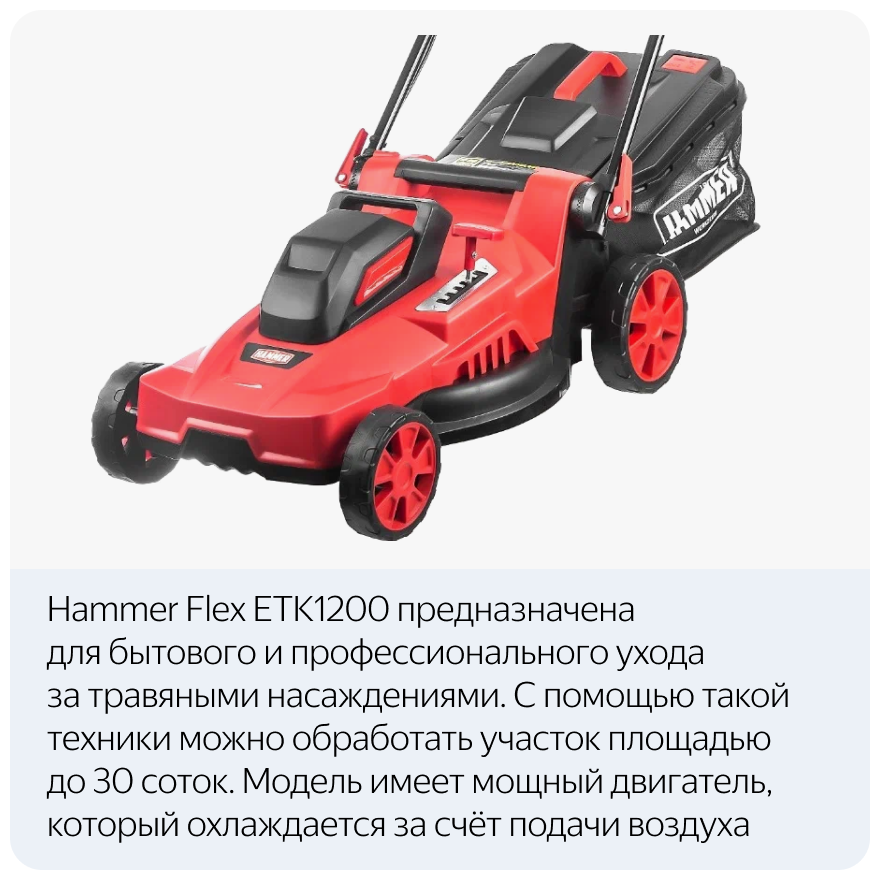 Газонокосилка электро Hammer ETK 2000 2000Вт шир.42см выс.20-70мм травосборник 45л. интересное:
