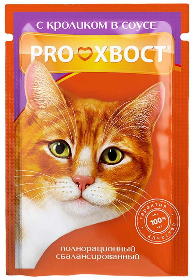 Корм влажный ProХвост , Прохвост пауч для кошек Кролик в соусе 85г , 25 шт