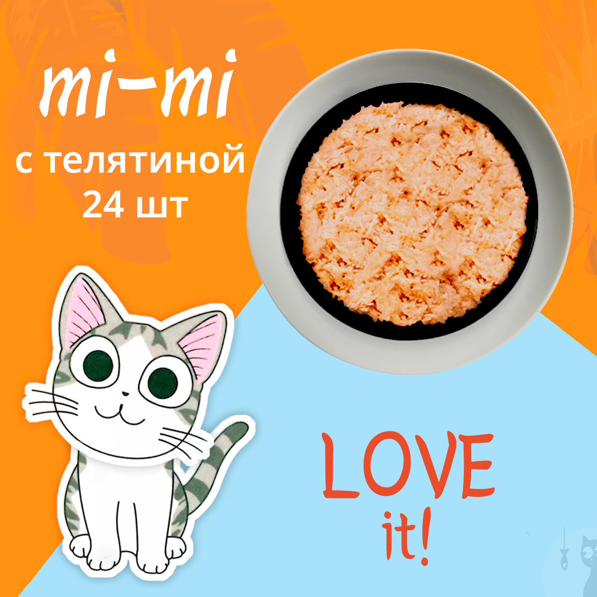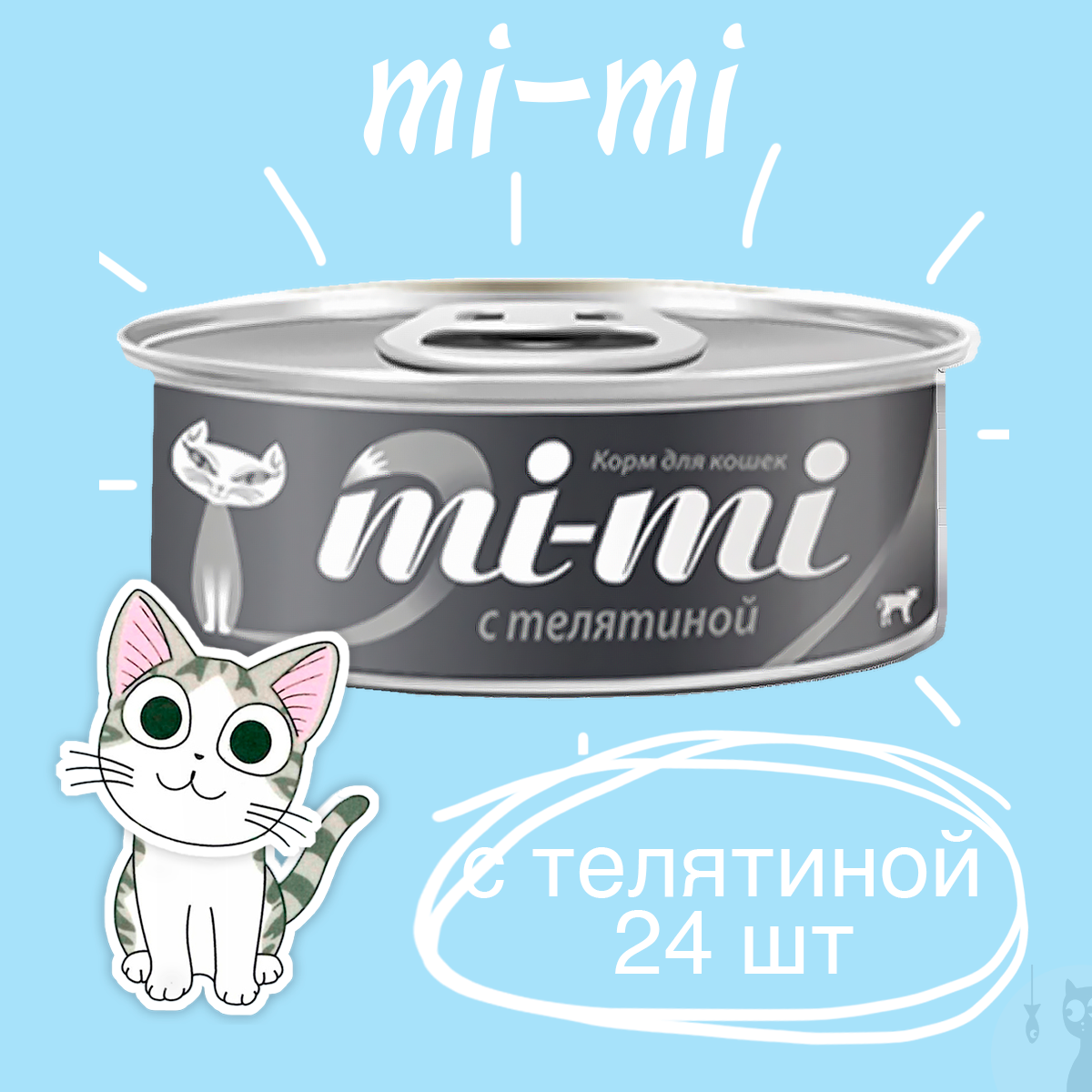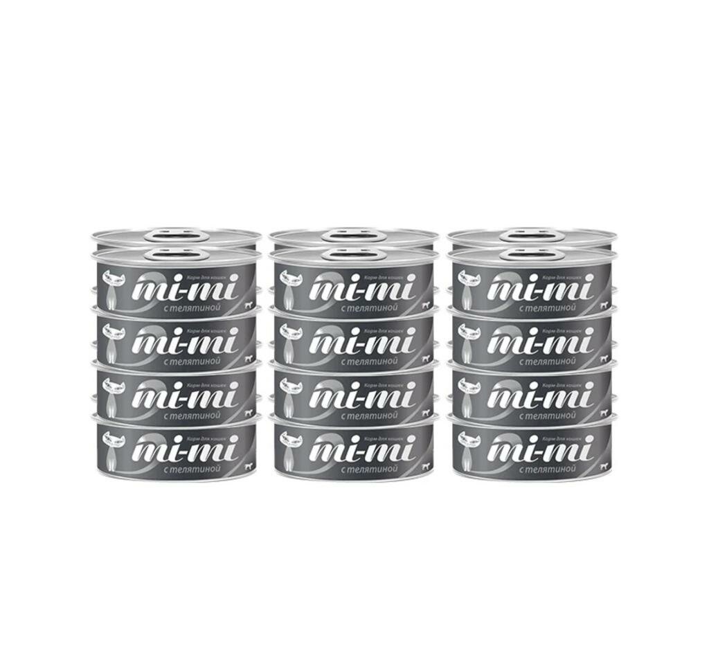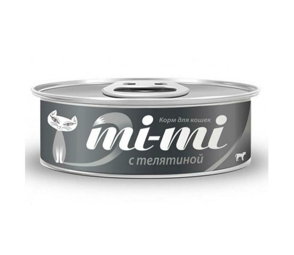 Корм консервированный влажный премиум-класса для кошек и котят Mi-Mi (телятина), 12 штук по 80 гр