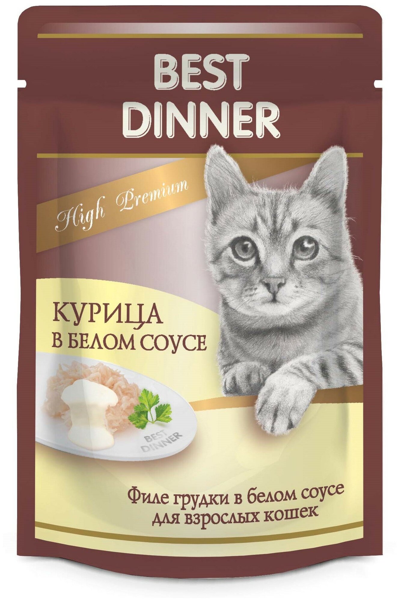 BEST DINNER HIGH PREMIUM для взрослых кошек c курицей в белом соусе (85 гр х 24 шт)