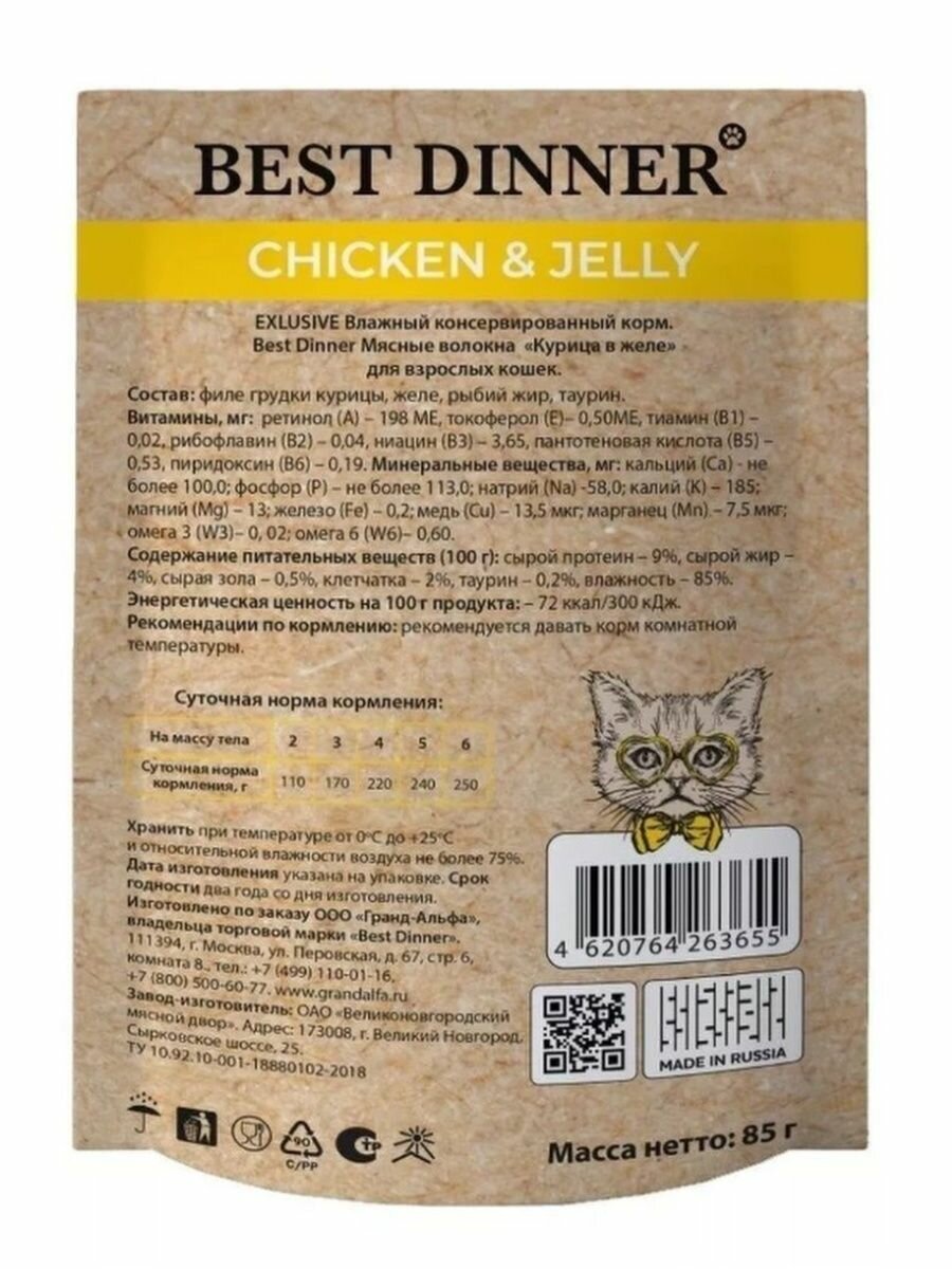 Best Dinner влажный корм для кошек всех пород, курица в желе 85 гр (2 шт)