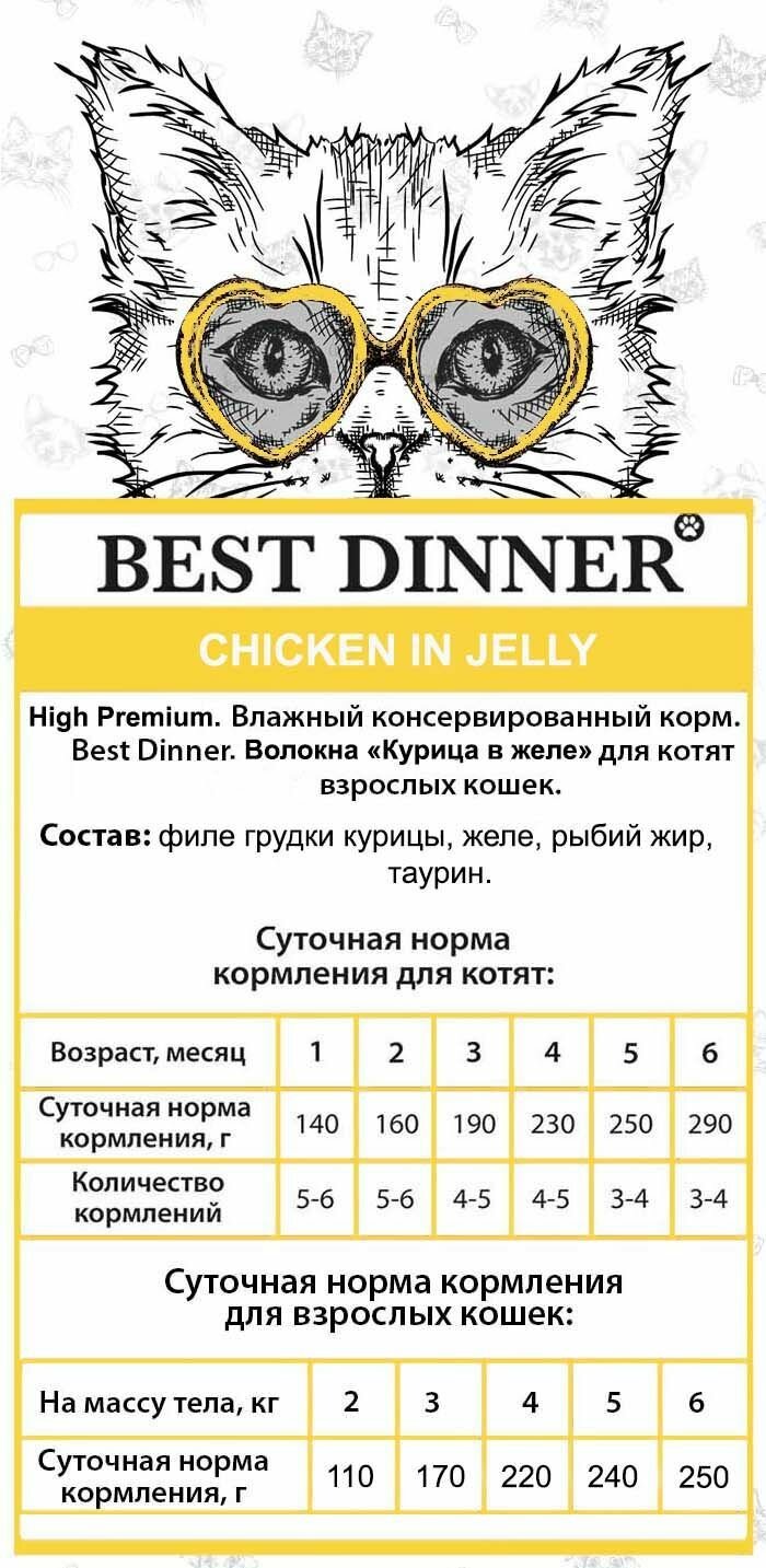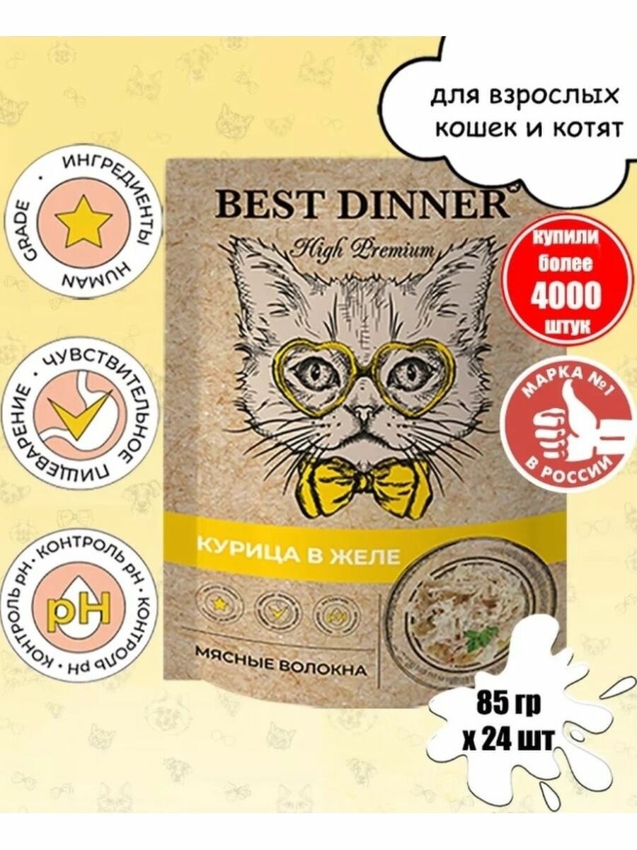 BEST DINNER HIGH PREMIUM для кошек и котят c курицей в желе 85 гр (85 гр х 24 шт)