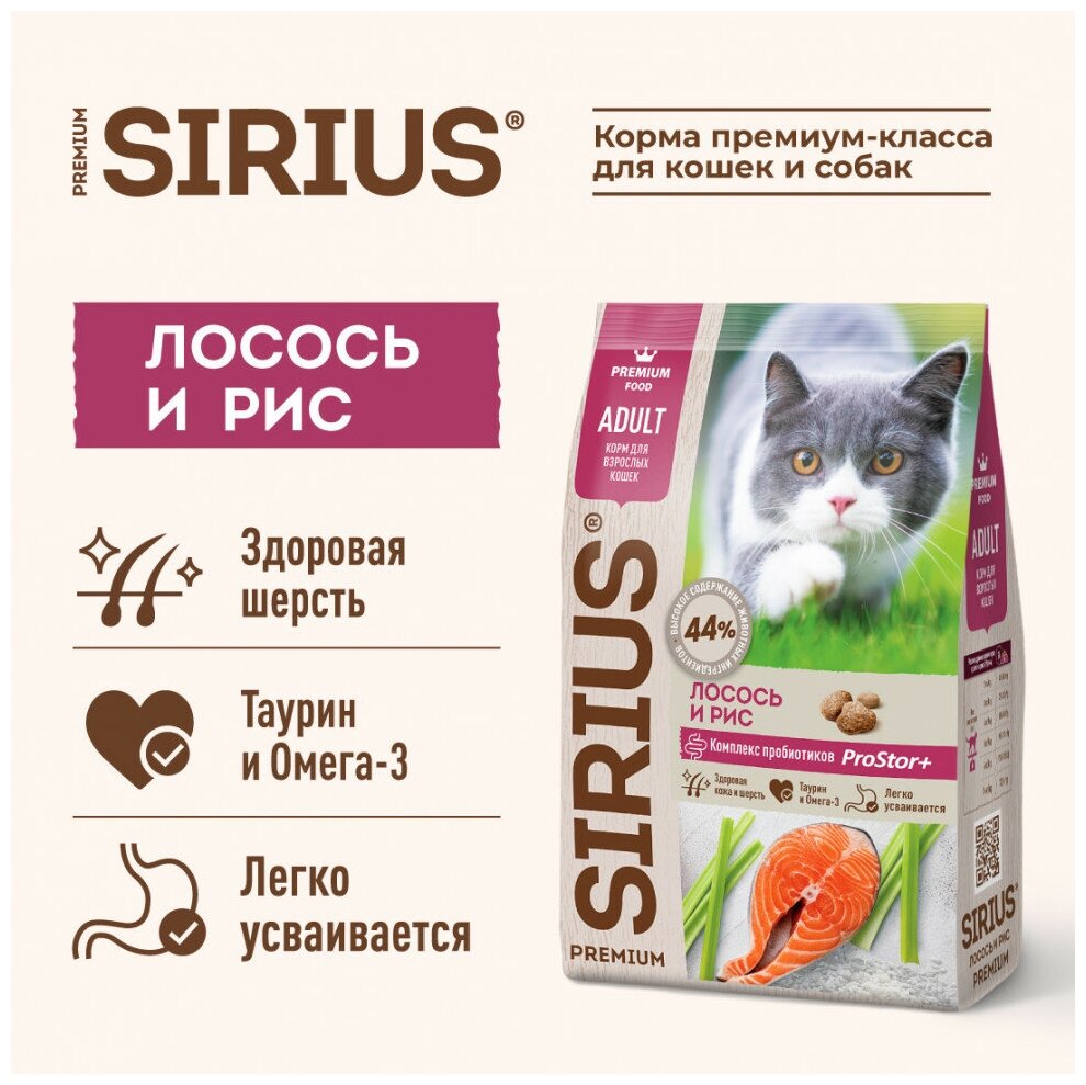 Купить SIRIUS для взрослых кошек с лососем и рисом (1,5 кг)