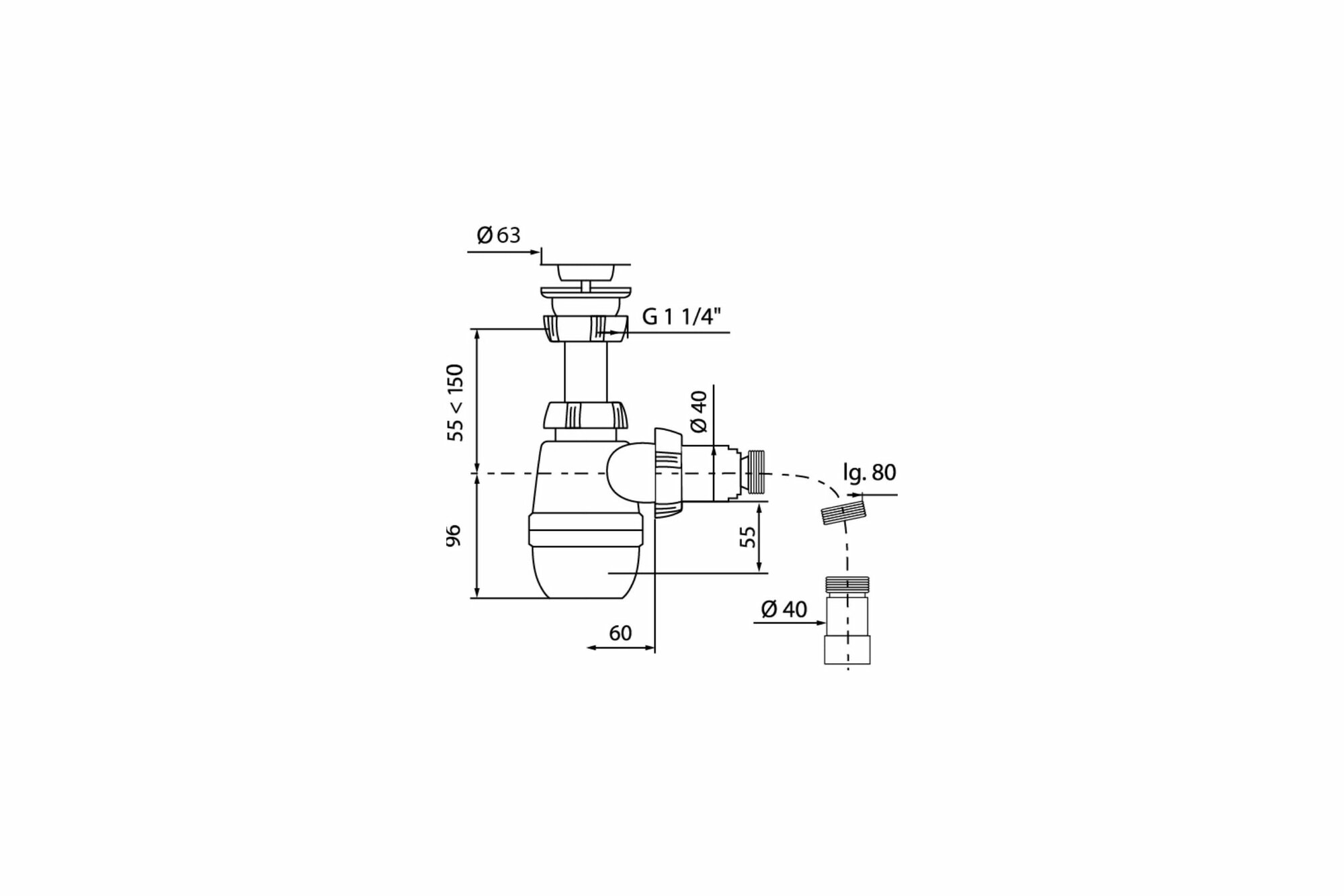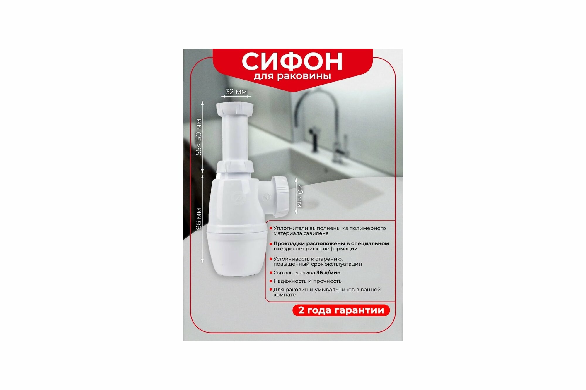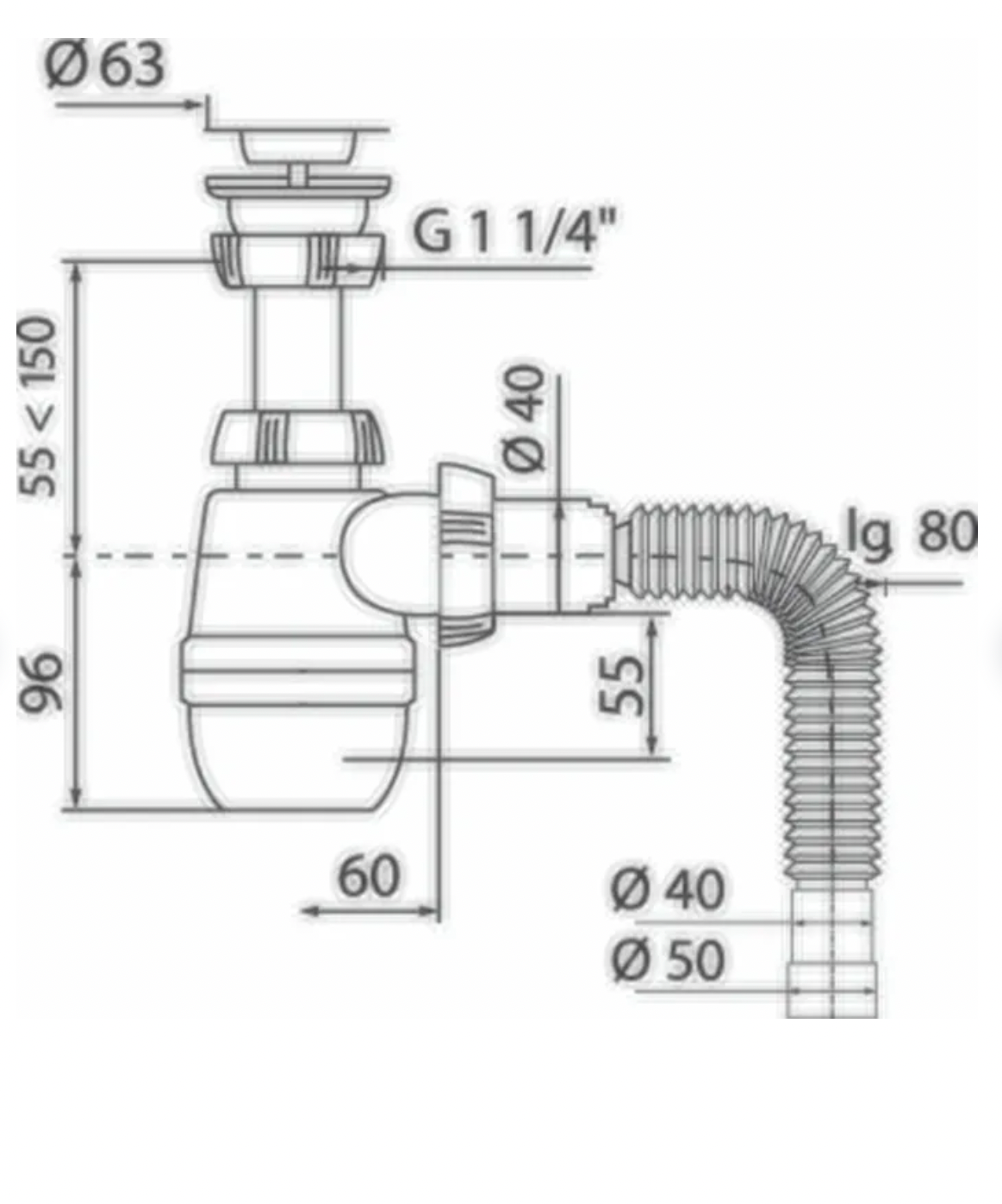 Сифон минор для раковины с выпуском 1'1/4 х 40 мм с гофротрубой L800 мм 40 х 40/50 мм | код 30718050 | WIRQUIN (1 шт.) интересное: