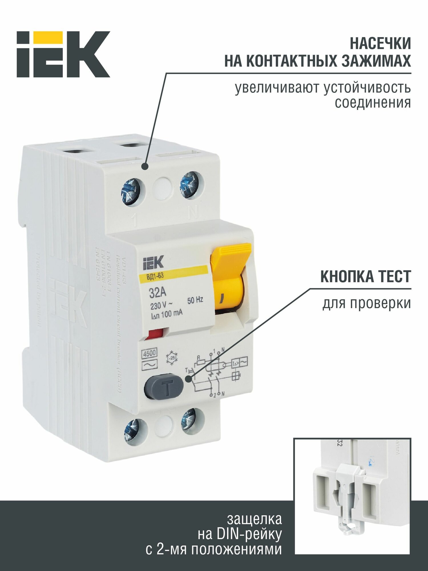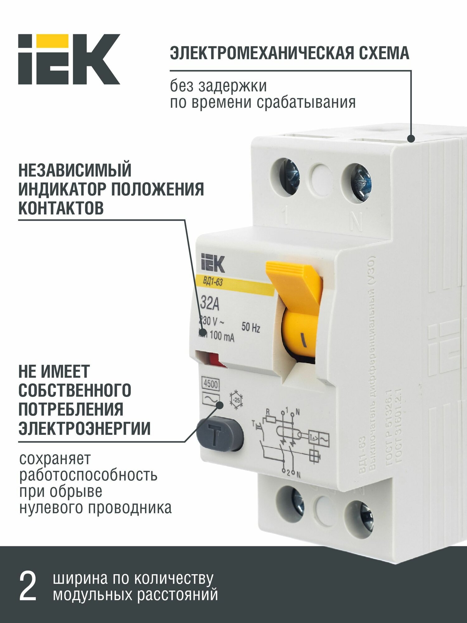 Купить УЗО ВД1-63 2P 32A 100мА IEK MDV10-2-032-100