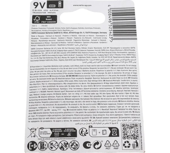 Варта / Varta - Батарейки Longlife Alkaline High Energy E-Block 9V 6LP3146, 1 шт