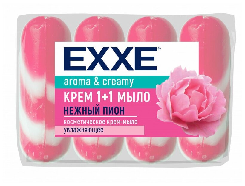 Туалетное крем-мыло EXXE 1+1, нежный пион, 4 шт x 90 г