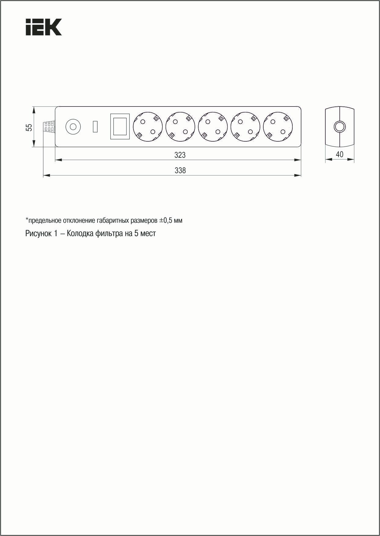 Фильтр сетевой Иэк 5-мест., СФ-05К-выкл, 2p+РЕ, 3 м, 3*1 мм2, выключатель