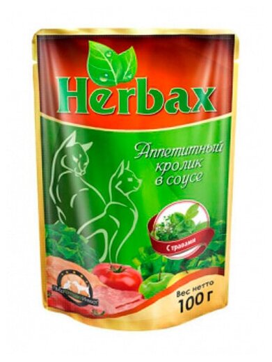 Herbax Паучи для кошек аппетитный кролик в соусе с травами 100г 24шт