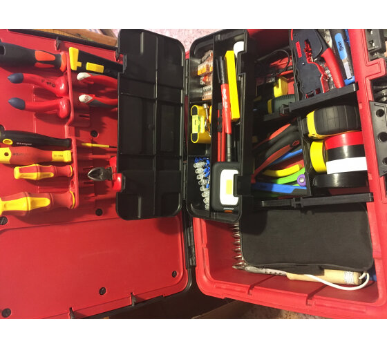 1. Ячейки на крышке категорически не продуманы. Электромонтажный инструмент в них просто не лезет, ни отвертки, ни шарнирно-губцевый. Нашел пару ячеек, в которые залазят длинногубцы, но они там не держатся, кусачки, клещи, пассатижы, можно запихать только в самый большой карман, но держаться там они не будут. Отвертки с изолированной ручкой тоже не впихнуть. 2. Планировка нижнего отсека слишком крупная - клеммы не насыпать, инструменты болтаются. Разочаровался. |