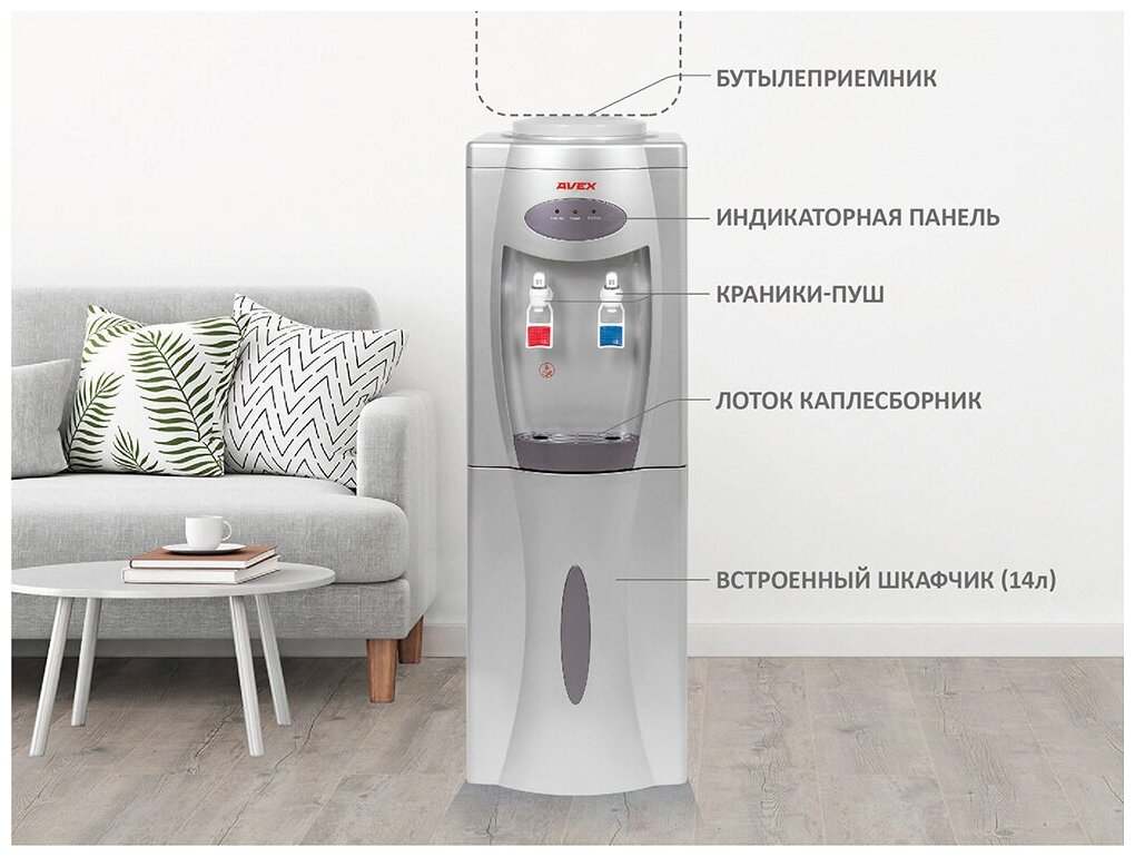Ниже Вы можете прочитать отзывы на Напольный кулер AVEX H-65FS, ознакомится с подробными характеристиками, посмотреть интересные обзоры и фотографии на Напольный кулер AVEX H-65FS.