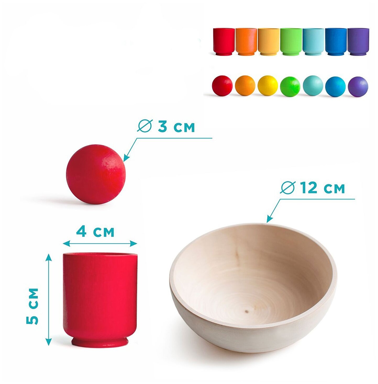 Сортер Шарики и ступки «Радуга» 7 цветов, стаканчики 6 см