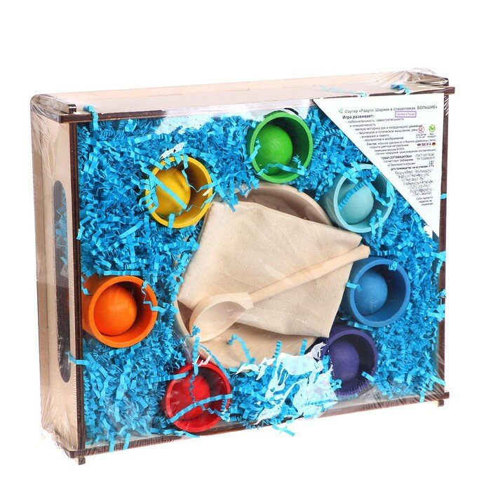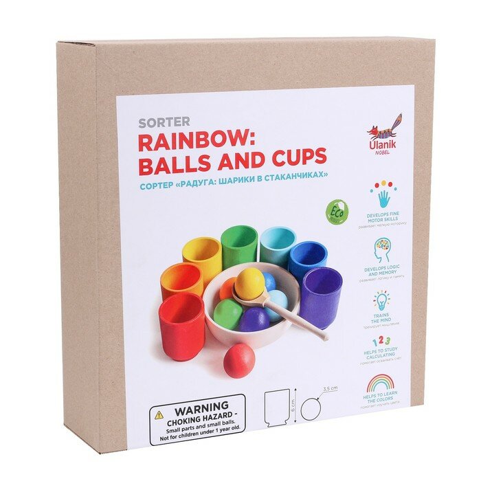Уланик Сортер «Радуга. Шарики в стаканчиках» 7 цветов
