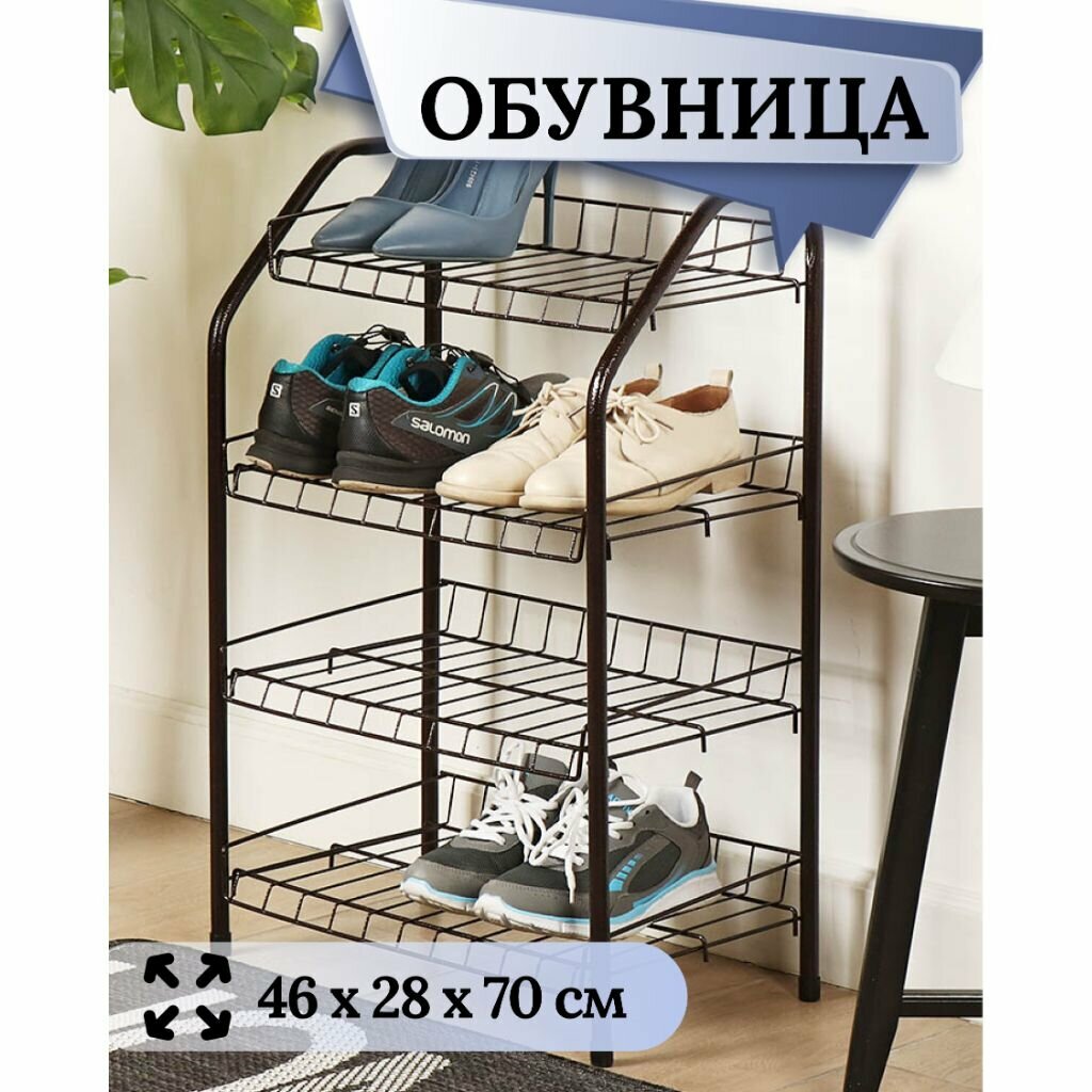 Полка для обуви, металл, 4 секции, 46х28х70 см, черная, Nika, ЭТ2/Ч