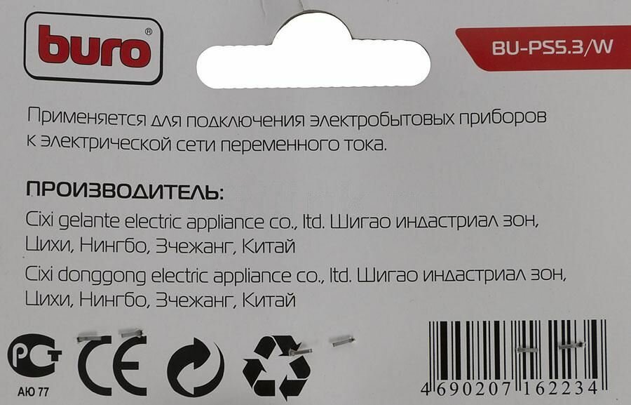 Удлинитель Buro BU-PS5.3/W