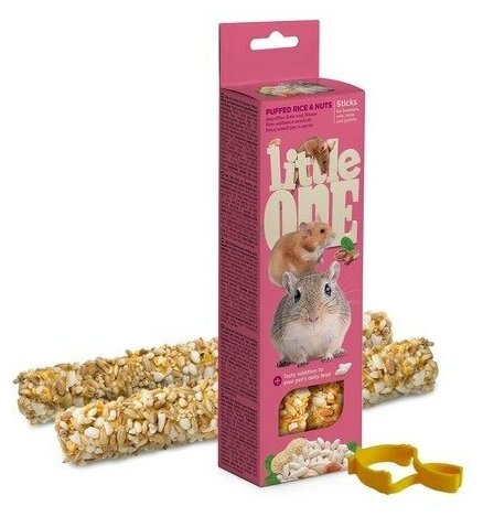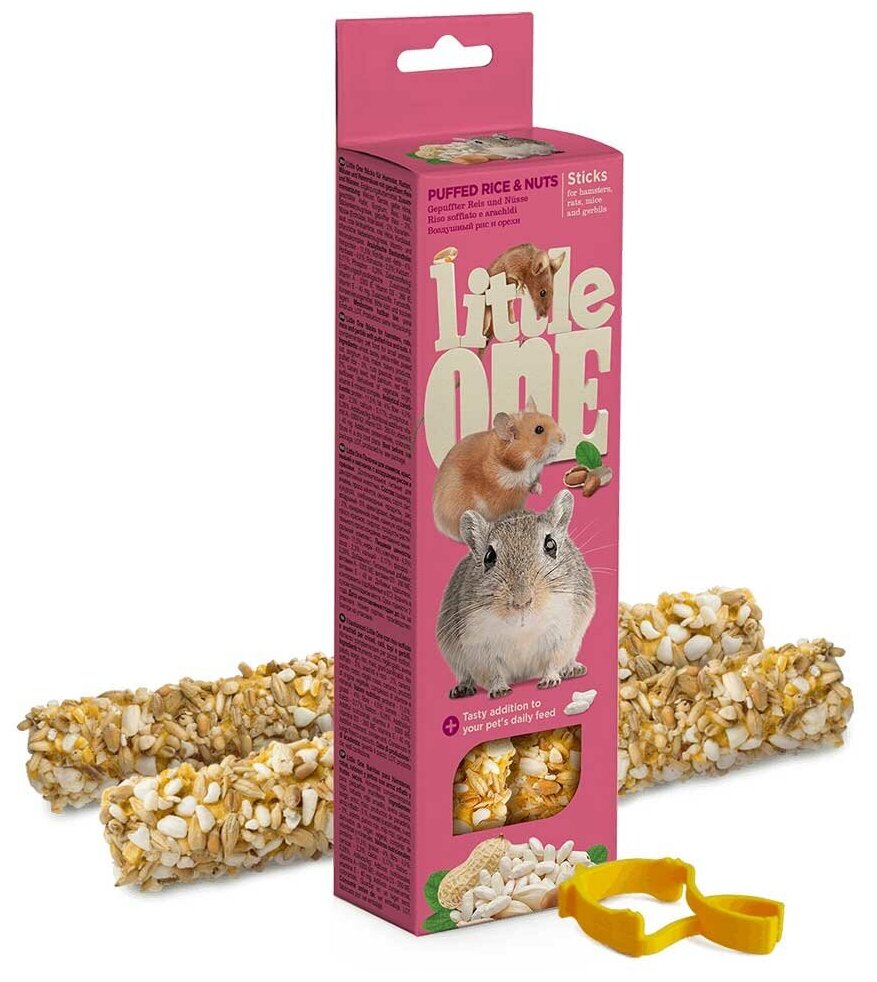 LITTLE ONE Лакомство для Хомяков, Крыс, Мышей и Песчанок Палочки с Воздушным Рисом и Орехами 120 г